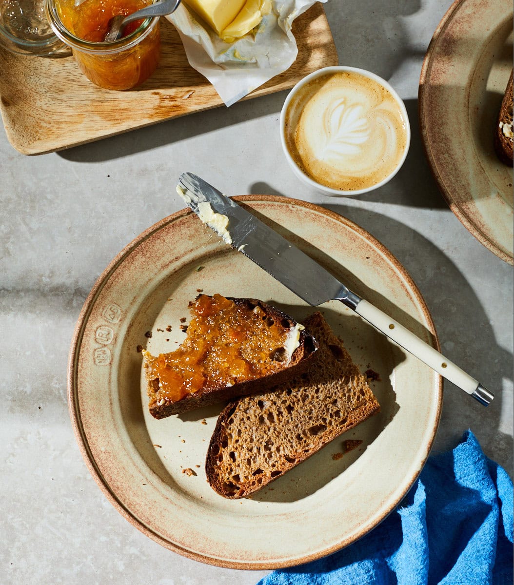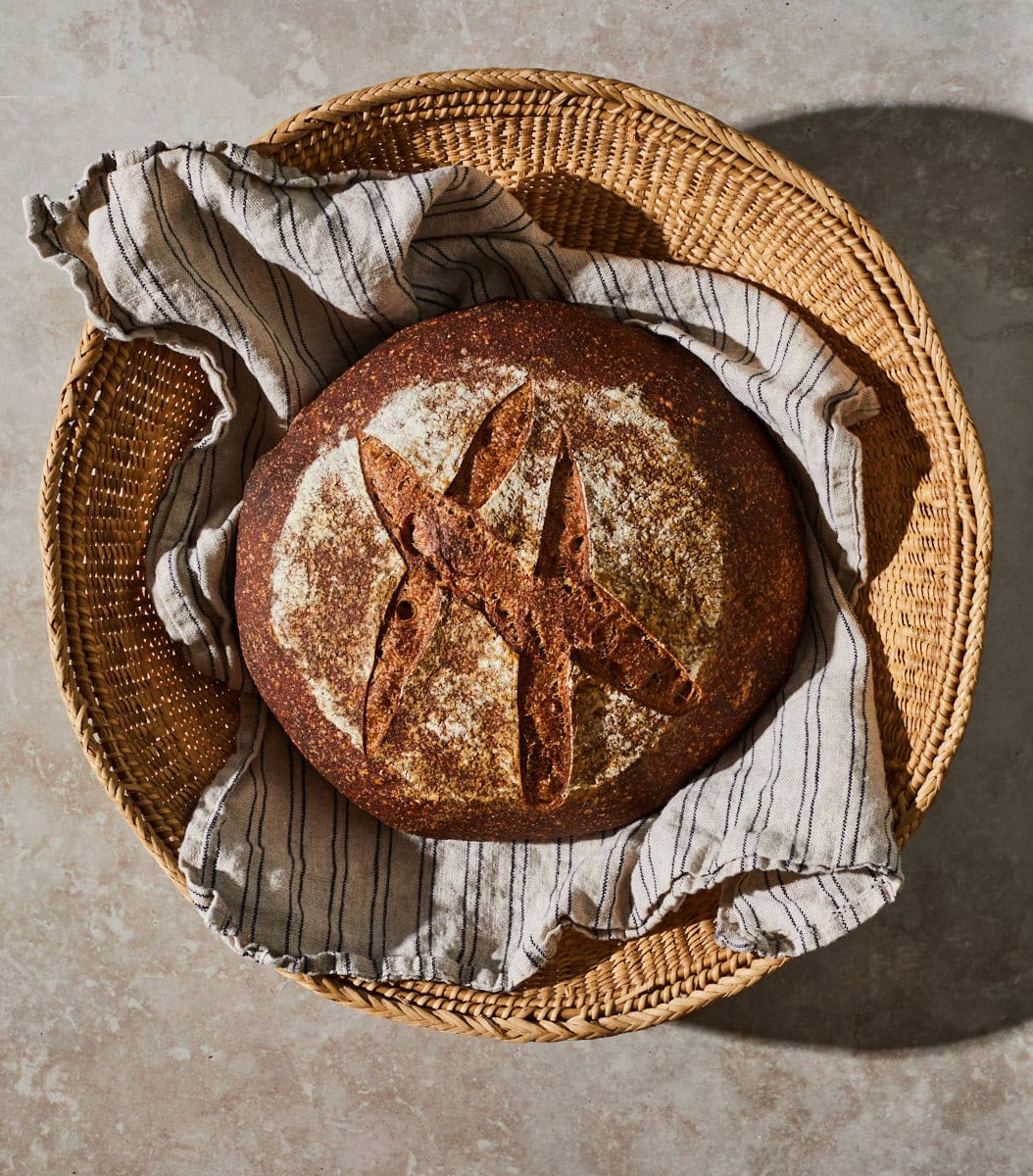 When it comes to whole-grain bread, it’s important to adjust our expectations of what exactly makes a successful loaf. Because whole wheat flour contains the entirety of the wheat berry, including much more of the nutritious bran and germ—and more fiber—the final loaf will be a little more squat than bread made with highly sifted white flour. But! While you’re trading ultra-tall loaves with an open crumb for a squatter loaf with a tighter interior, whole wheat sourdough bread is like a pirate’s ship hauling new bounty, laden with copious flavor and nutrition.