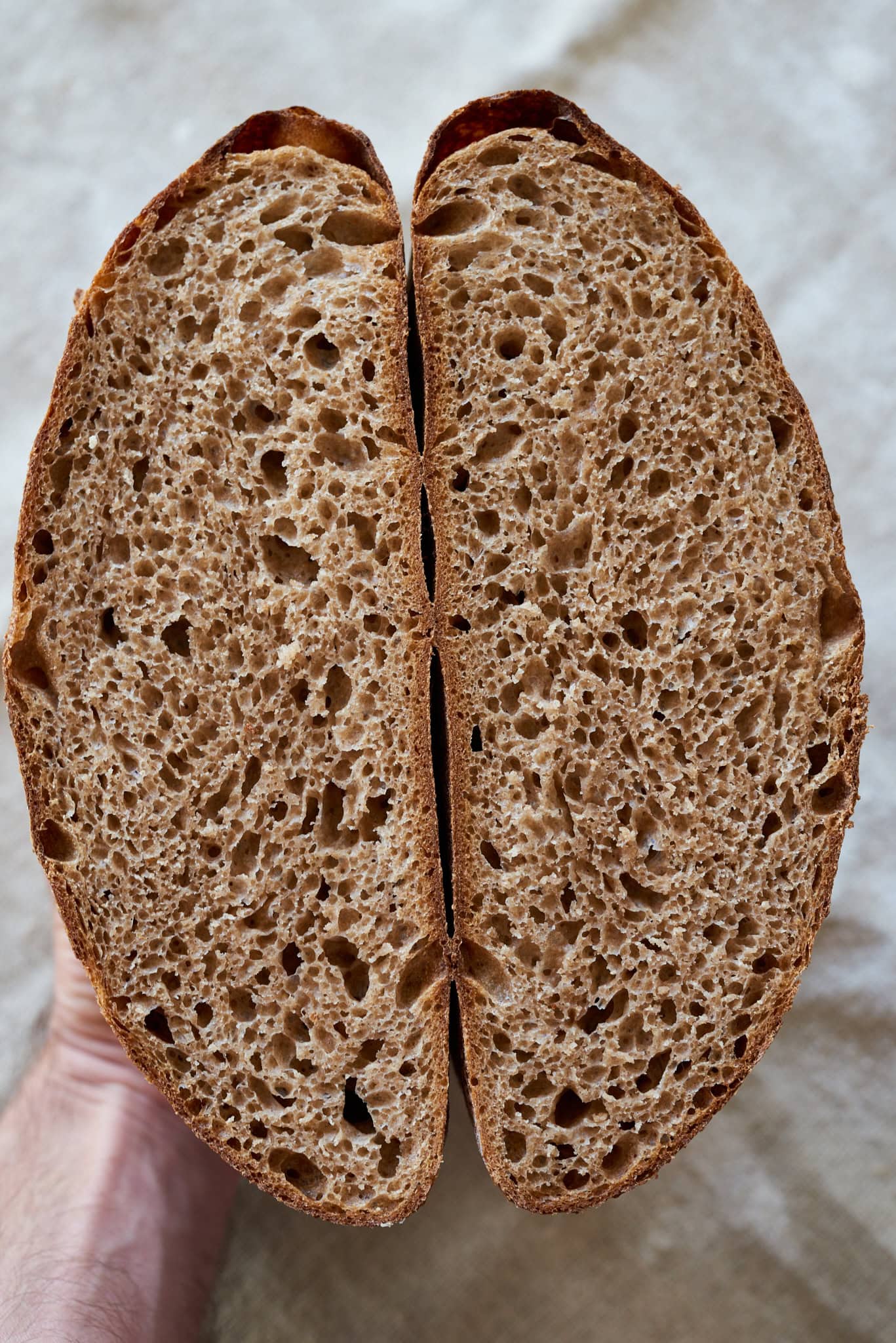 This 100% whole wheat sourdough bread is the purest example of healthy sourdough bread. If you’re looking for a loaf that’s just as flavorful but lighter in texture, my Fifty-Fifty Sourdough Bread is the ticket.