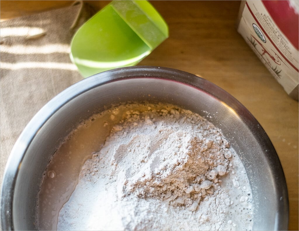 Mix the flour and water, autolyse – 9:00 a.m.