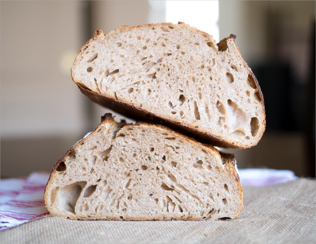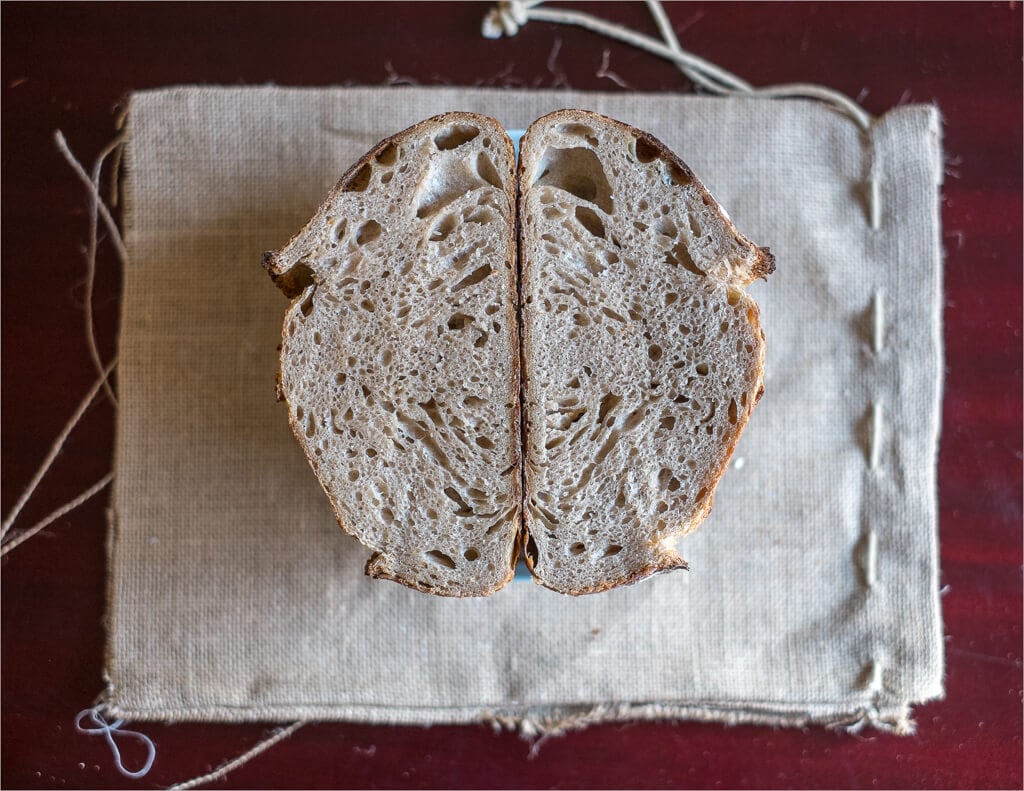 Now that you’ve got this bake down, have a look at a newer approach where I modify the amount of levain used, tweak the autolyse time, and get some insanely amazing results! I like to call it my sourdough with less levain and longer autolyse. Still no “tricks” here, just tweaking parameters to help get that bread a little higher and a little more open.