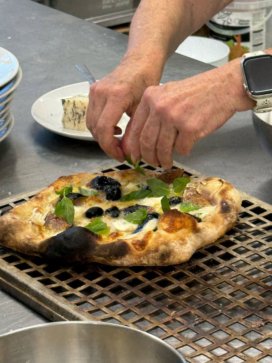 On our final day, we threw a pizza party at the school as our farewell celebration. We fired up the bread oven and made over twenty pizzas, everyone stretching their own dough and choosing from an incredible spread of local ingredients—fresh fior di latte mozzarella, creamy gorgonzola, prosciutto, ripe figs, and more.