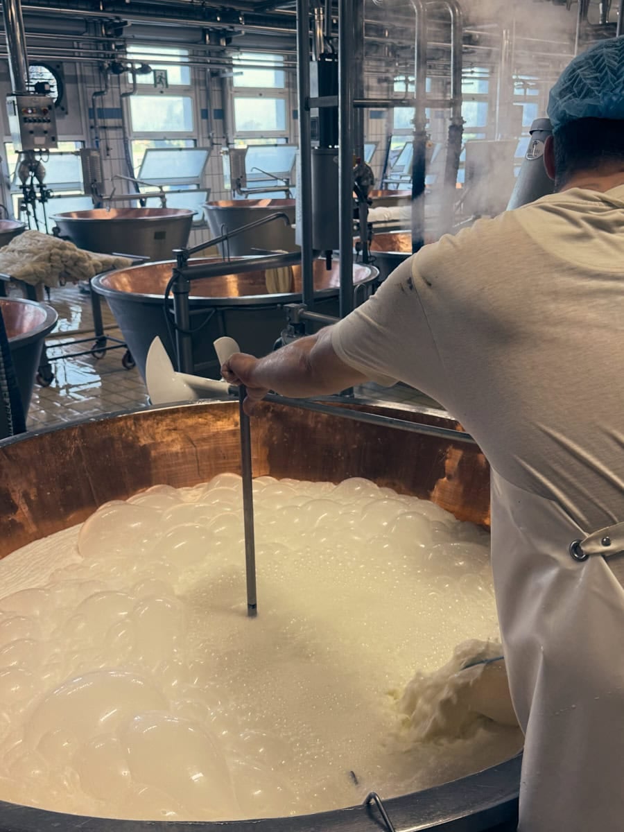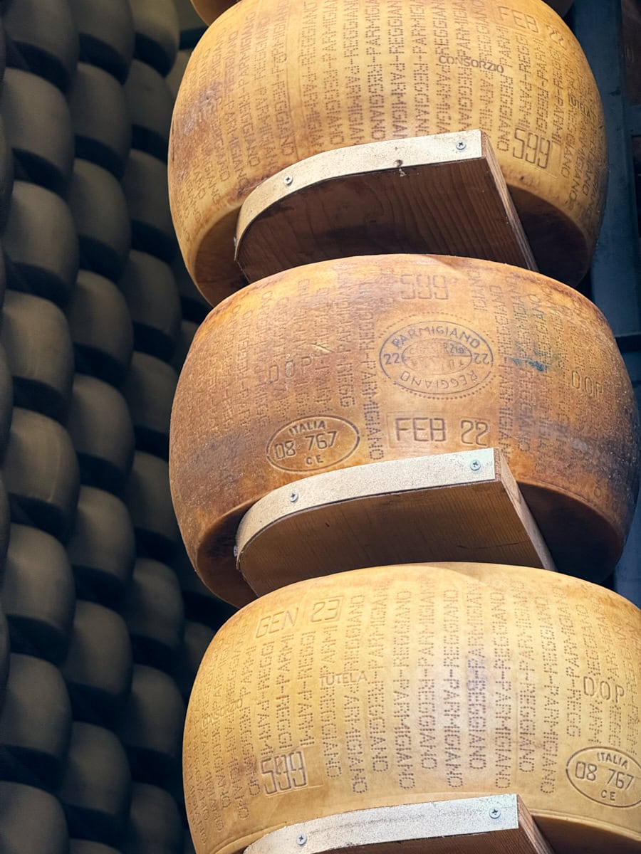 After a private bus ride out from Bologna to the cow-laden countryside, we had a private tour of Latteria La Grande, a large Parmigiano Reggiano producer. Led by a super-enthusiastic and quite chic tour guide, it was fascinating to watch as the workers coerced raw milk into large wheels of cheese.