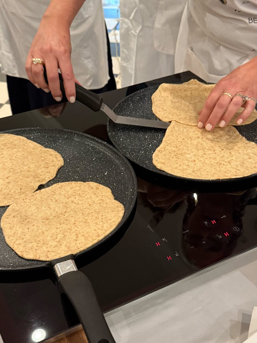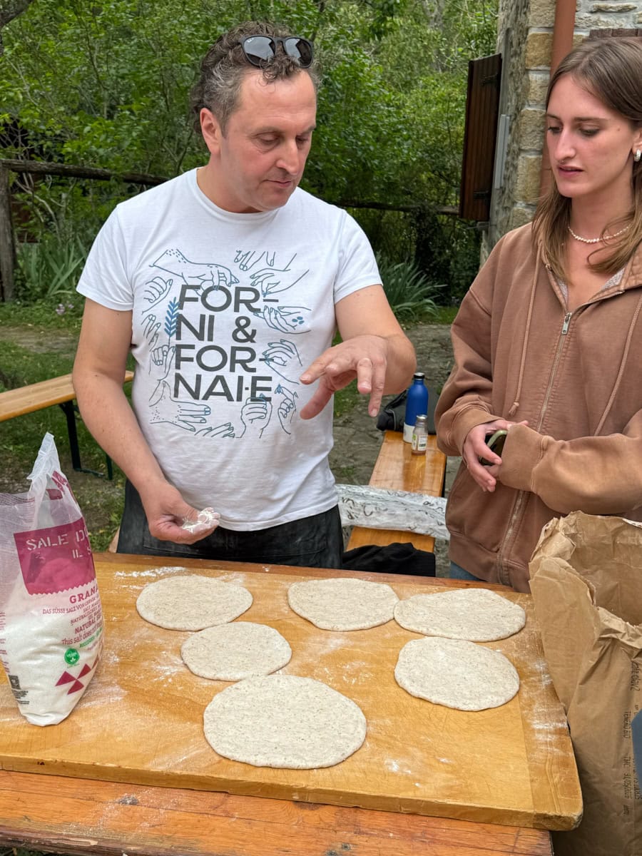 At the start of the tour in the evening, I led a piadine workshop, my sourdough version of the local flatbread, served with prosciutto and other local meats and cheeses. A fun way to break the ice with the travelers.