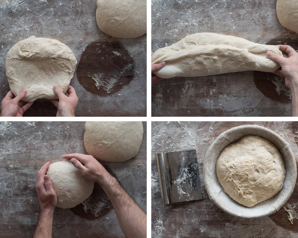In the video below, you can see how I shape bread dough into a boule shape.