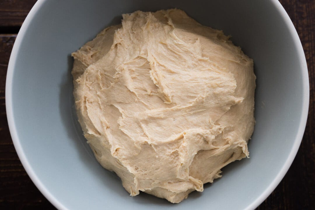 Note that you don’t have to make a levain for this recipe, just use your ripe sourdough starter (see the difference between the two here). However, make sure the night before when you refresh your starter you build up enough to cover the starter requirement below (185g).
