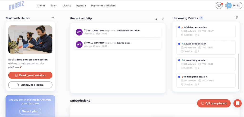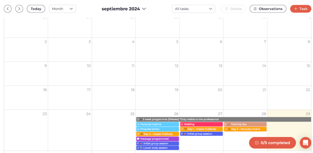 Right from the start, we saw that Harbiz caters to a broader range of professionals, including yoga and pilates instructors, physiotherapists, and nutritionists. One stand-out feature is the ability to schedule various tasks on clients’ calendars: personal training sessions, cardio workouts, nutritional lessons, and more.