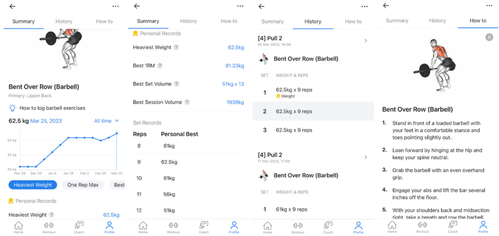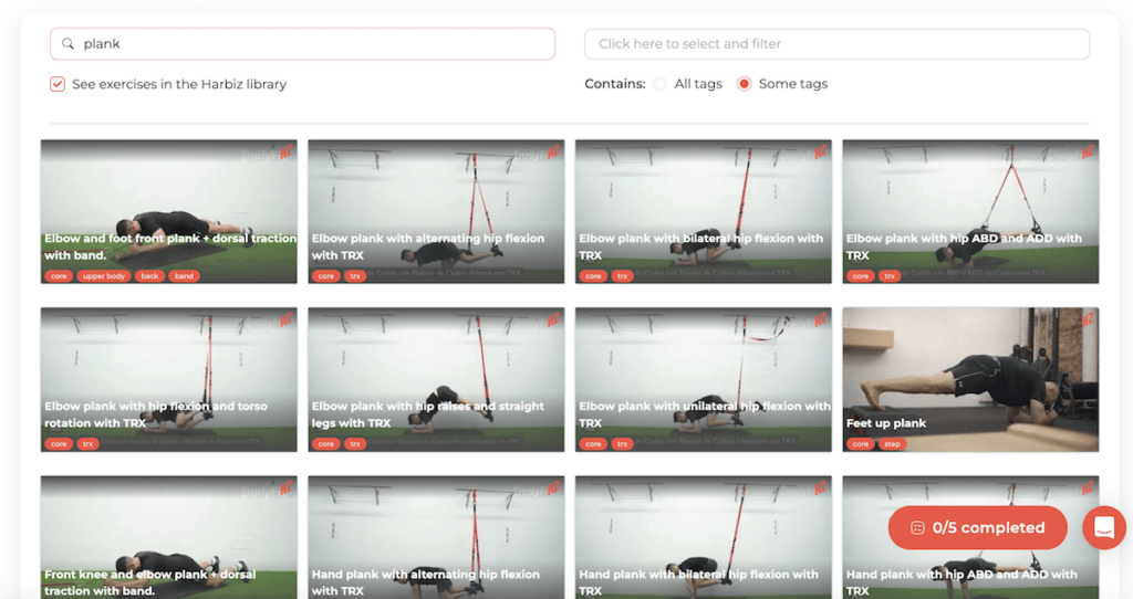 Harbiz’s exercise library is quite extensive, with 900+ entries. Each movement comes with a short demonstrational video and basic how-to instructions.