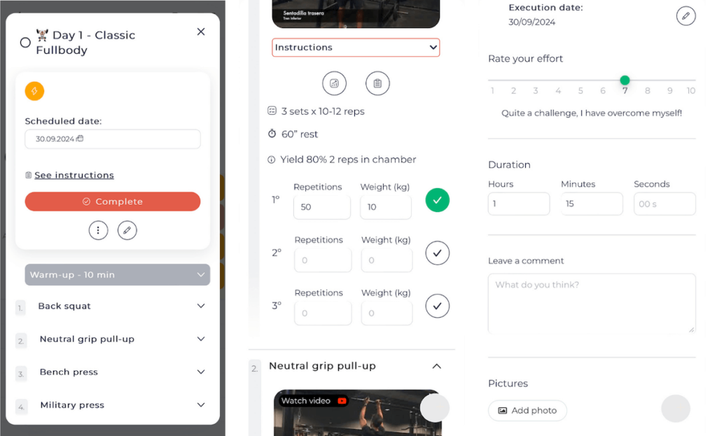 Before completing the workout, the client can upload photos and videos and leave a comment for you. This is similar to the Harbiz app.