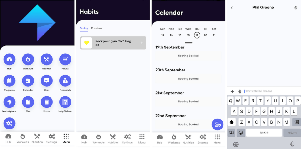 MyPTHub’s coach app has the same features as the desktop version. It has a sleek design and a menu with numerous options.