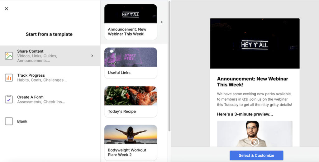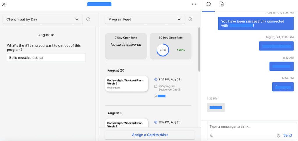 Cards are collections of content organized by category and purpose. You can use a card template to streamline the process and share helpful content (like announcements and recipes), create progress-tracking forms, build questionnaires, or even create training programs and meal plans.