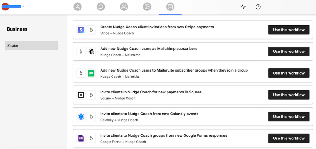 The closest thing Nudge Coach has is its Business section, where you can create various integrations to platforms like Stripe, MailChimp, and Google Forms through Zapier.