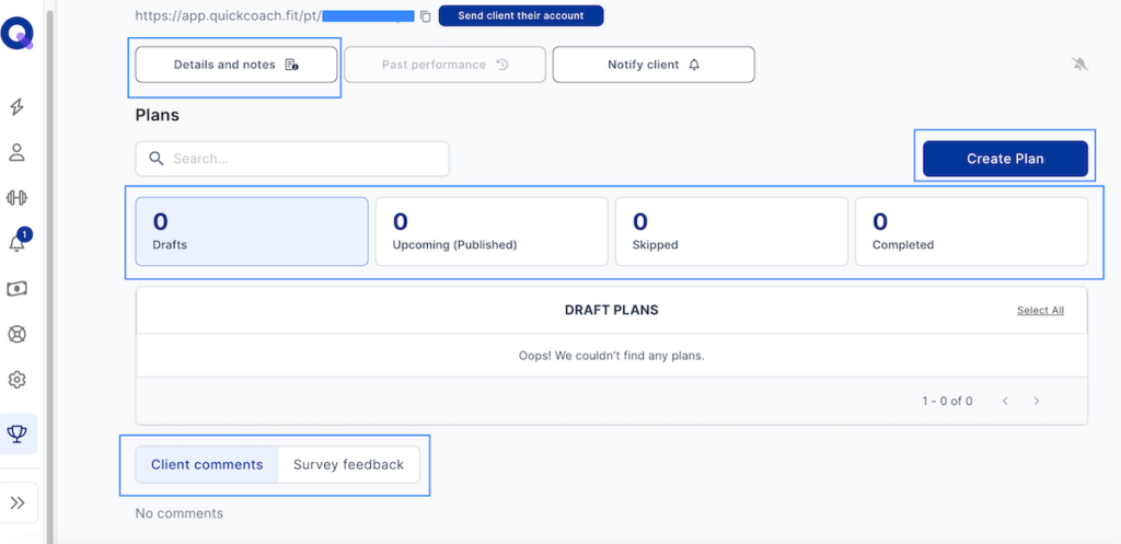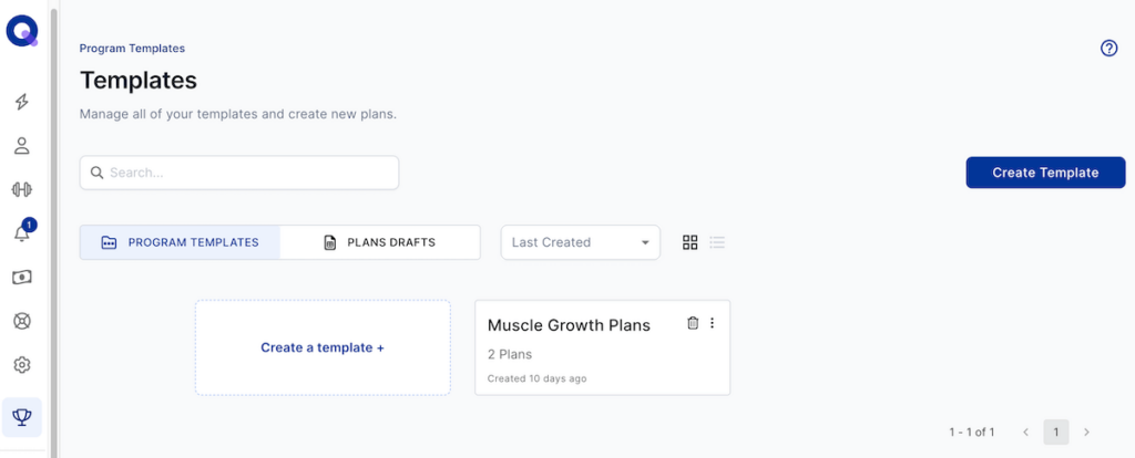 QuickCoach doesn’t have a traditional program library. Instead, the two primary sections under Plans are Program Templates and Plans Drafts.