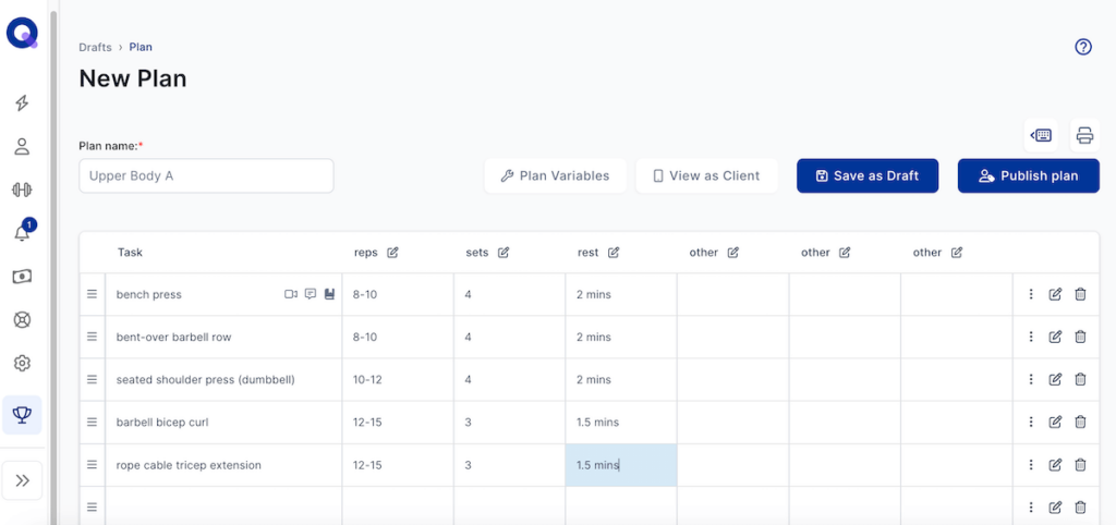 Some areas that are overly basic or missing altogether include the workout builder, program library, individual client profiles, dashboard, and exercise library.