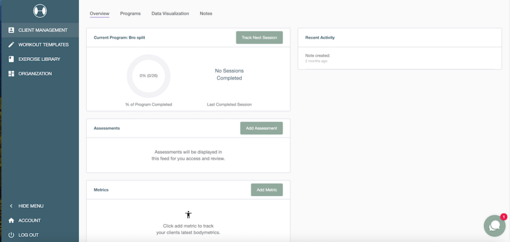 The dashboard is one central section that’s missing on StrengthPortal. This means there is no quick way to get an overview of your clients, who’s been active, and what they’ve been up to.