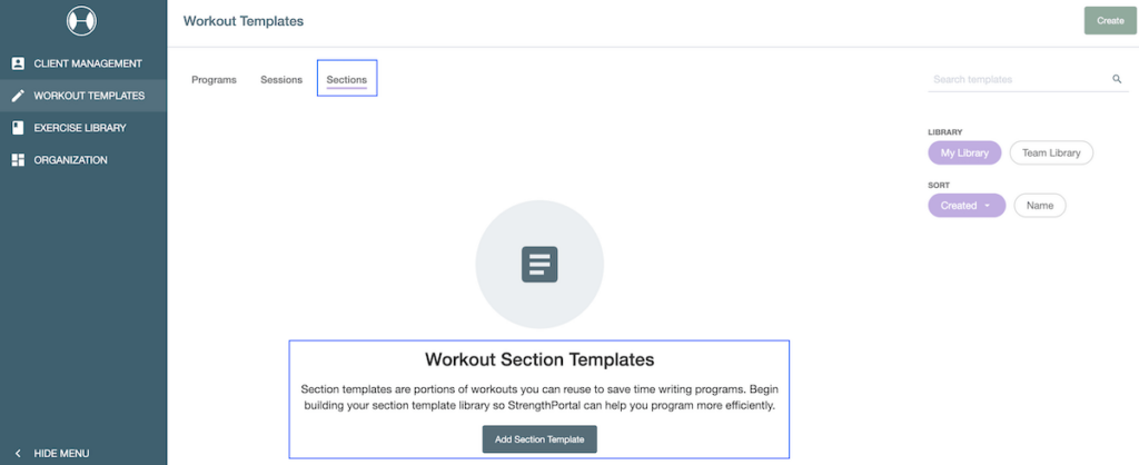 Access StrengthPortal’s workout builder by clicking on any training program in the Workout Templates section.