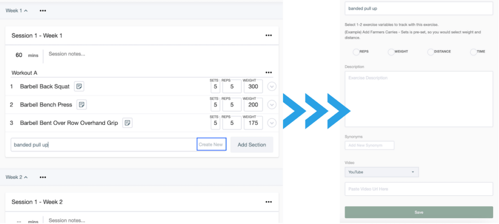 So, even if you want to prescribe movements not found in the library, you can add them once and reuse them as many times as you wish. Team members gain instant access to any custom exercise created by a coach on the team; more on that below.