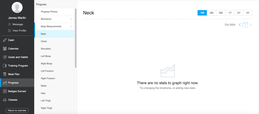 - Body Measurements – monitor your client’s body weight, body fat, and circumference measurements on individual graphs