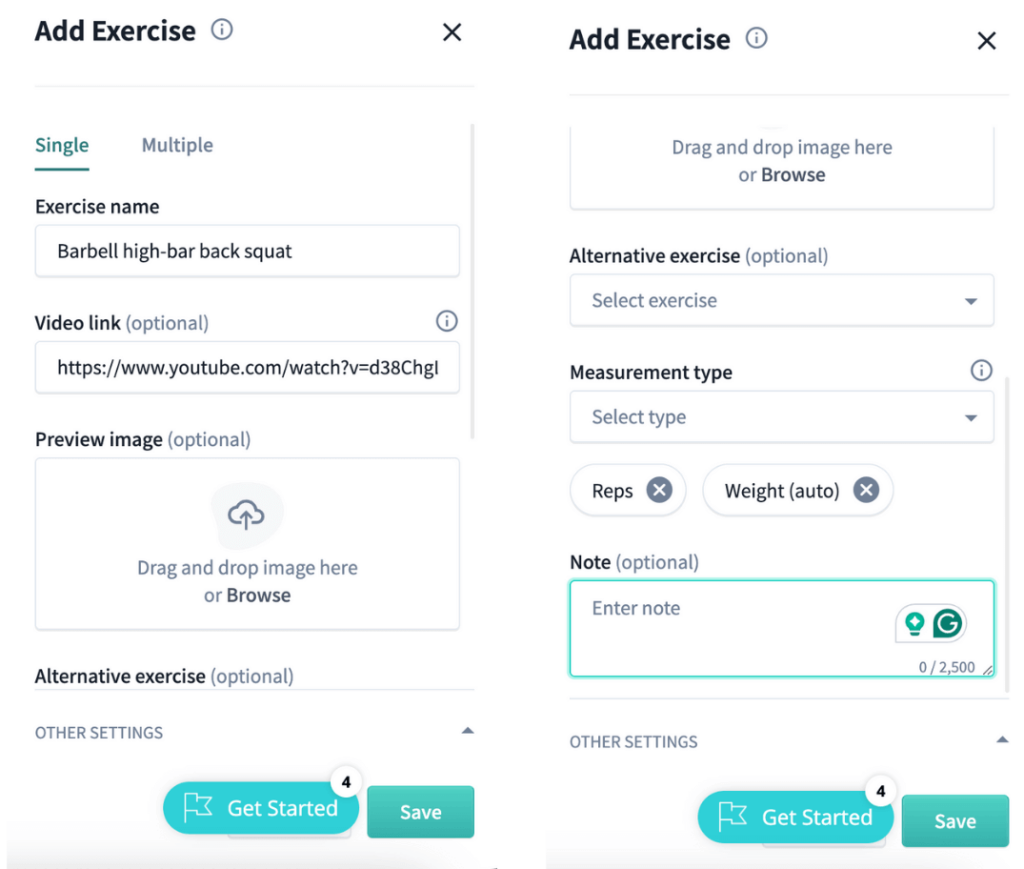 Lastly, before marking a workout as complete, you can upload videos and images and write a note for the session as feedback for future reference.