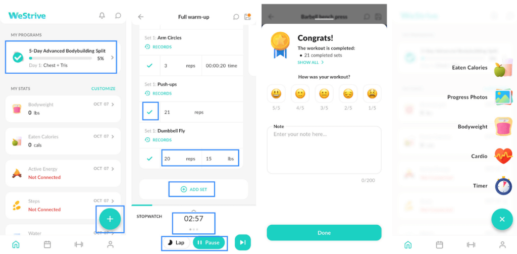 Second, you have greater flexibility to adjust training variables during a workout. You can add or remove sets like on WeStrive, but also: