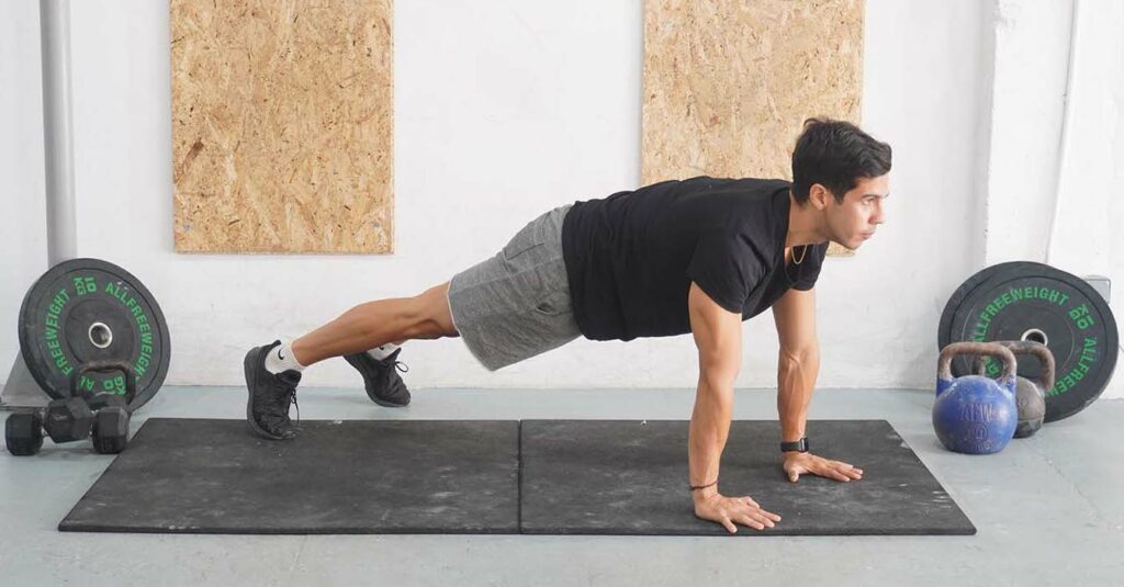 Knee plank (forearm) ⇒ Knee plank (straight arms) ⇒ Elbow plank ⇒ High plank