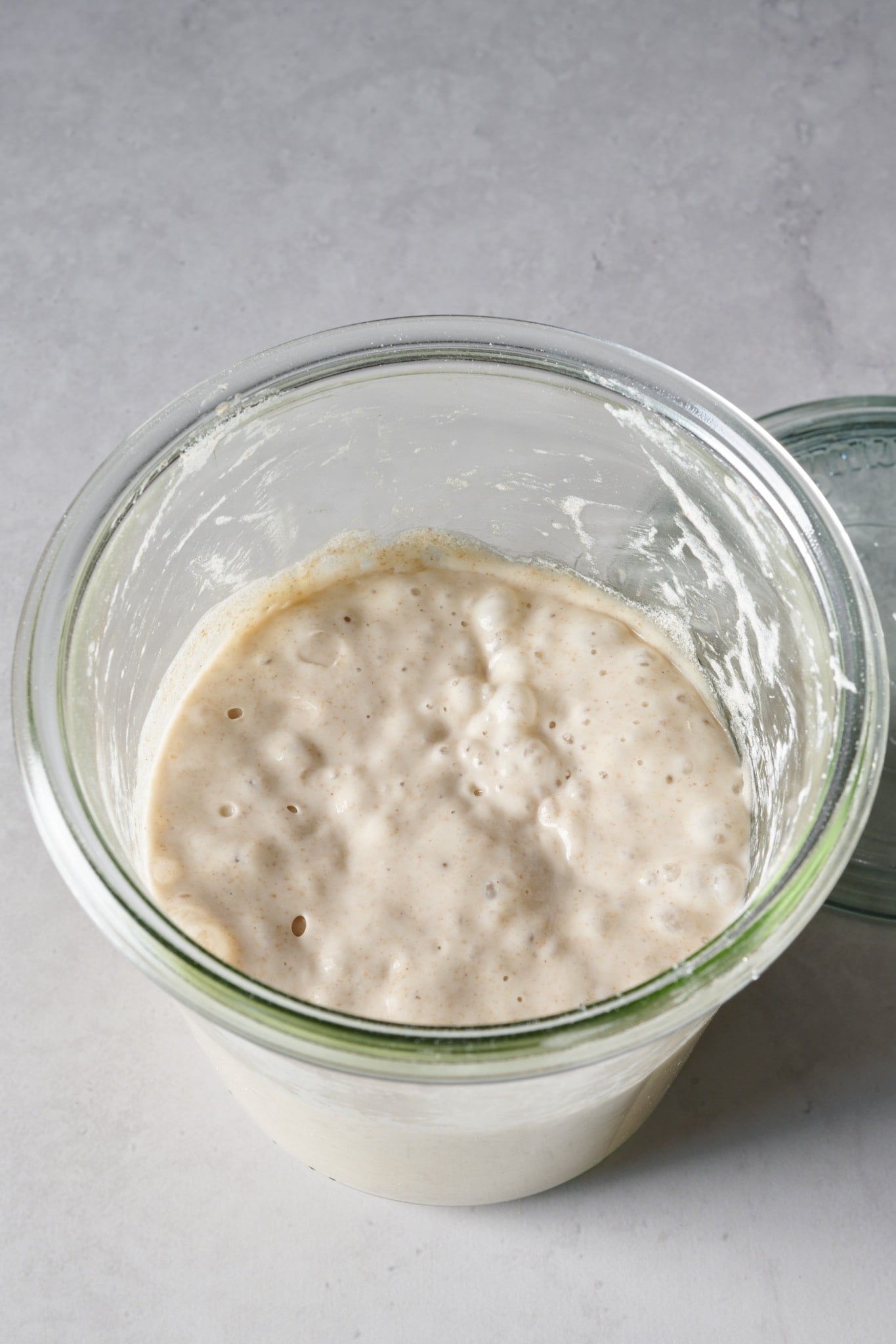 Here’s how my starter looked coming out of the Sourdough Home on Day 4. You can see the starter has risen in the jar, is bubbly on the sides and top, and looks, well, like a normal ripe sourdough starter. This is good!