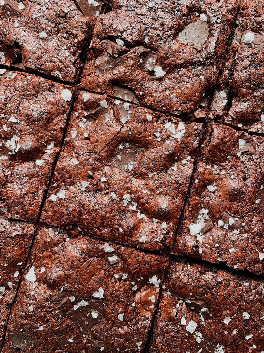- Lift the brownies out of the pan by the parchment and place on a cutting board. Cut into pieces (I like cutting the batch into 9 large, 12 medium, or 16 bite-sized pieces). Brownies will keep in an airtight container at room temperature for up to 5 days, in the fridge for up to 10 days (I love cold brownies, this is my preference), or in the freezer for up to 4 months.