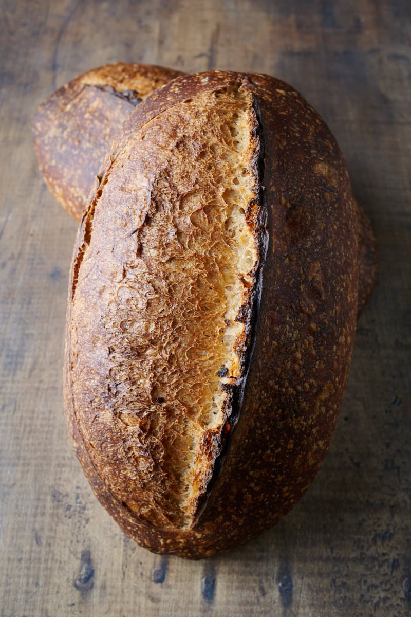 Let’s look at some examples of properly baked loaves. Now, I like to bake my bread a little darker for maximum flavor, but if you prefer a slightly lighter shade, that’s totally fine, too. The key is that you’ll notice none of these loaves have pale spots or underbaked crust.