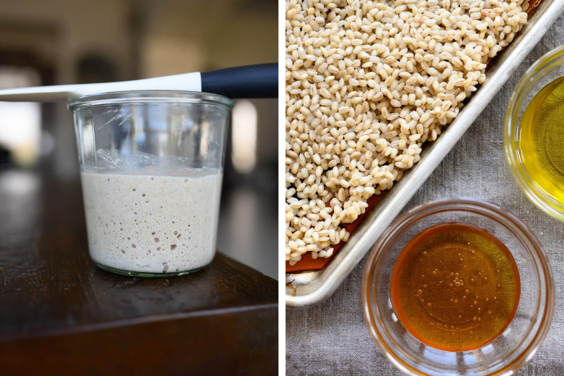 If you have flaked or rolled barley, you can also use this for the porridge, similar to how rolled oats are incorporated into an oat porridge sourdough bread. Adjust the cooking time of the porridge as needed; the flakes will likely cook much faster.