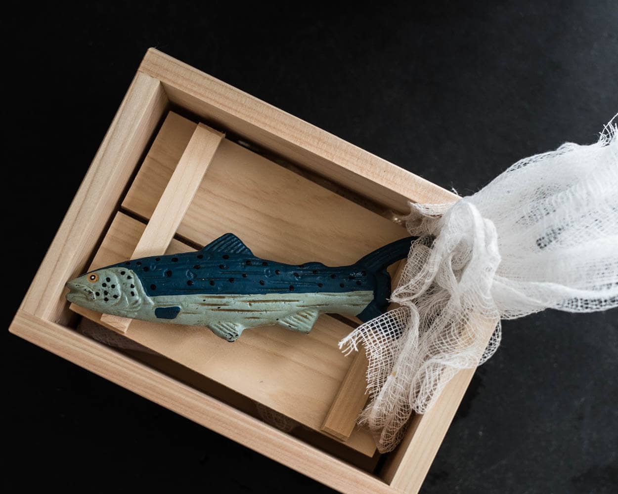 My iconic fish, an incredibly heavy cast iron bottle opener I’ve had for just about ever, stepped in to help gravity do its job.
