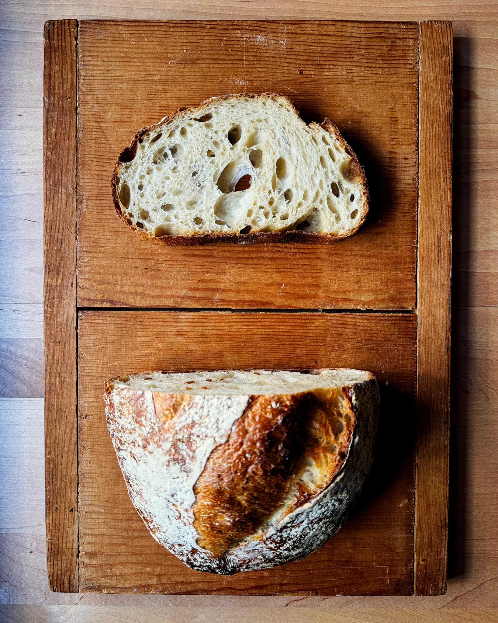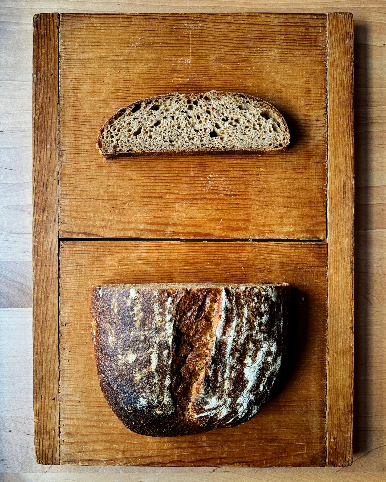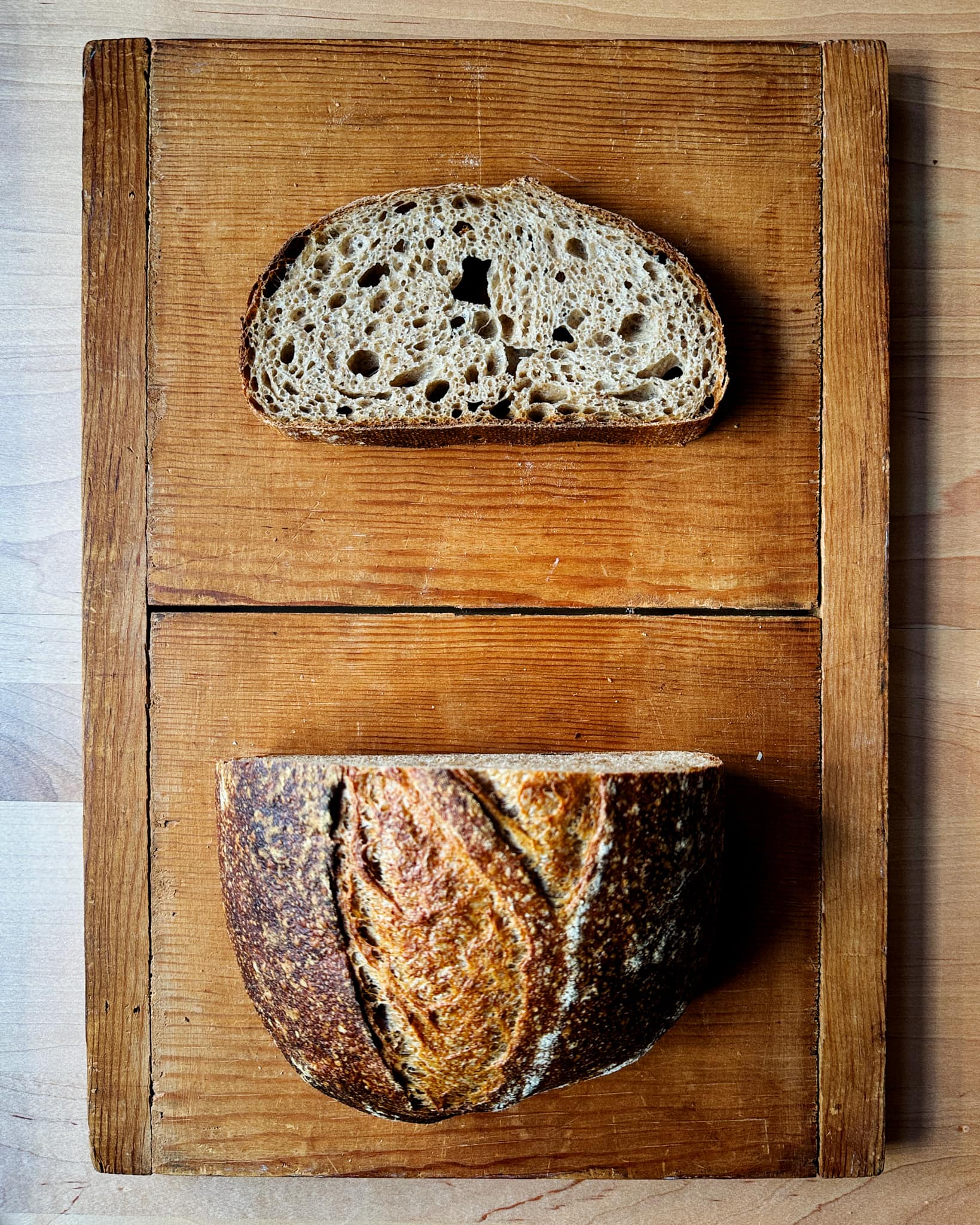 Now that you know how to calculate the ideal hydration for a new dough based on two previously known ones, a good place to try it out is with a tried-and-true sourdough recipe with all-purpose flour and an all-whole wheat recipe.