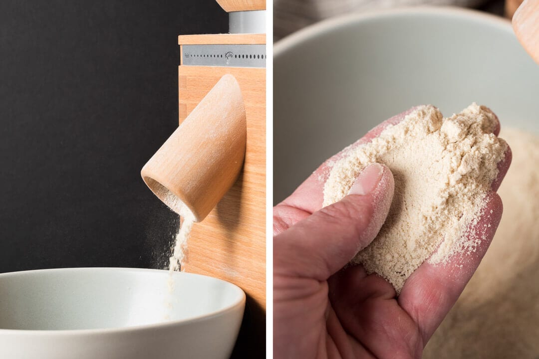 The Kamut milled for this post was done exclusively on my KoMo mill just like the one in the giveaway below. I find that milling such a large quantity of raw berries does tend to heat the resulting flour right out of the mill. To offset this, I place the required berries in the freezer a couple of hours before milling. Additionally, I like to mill all the grain needed for the recipe at the same time I build my levain; this gives it several hours to cool and reach room temperature (if necessary).