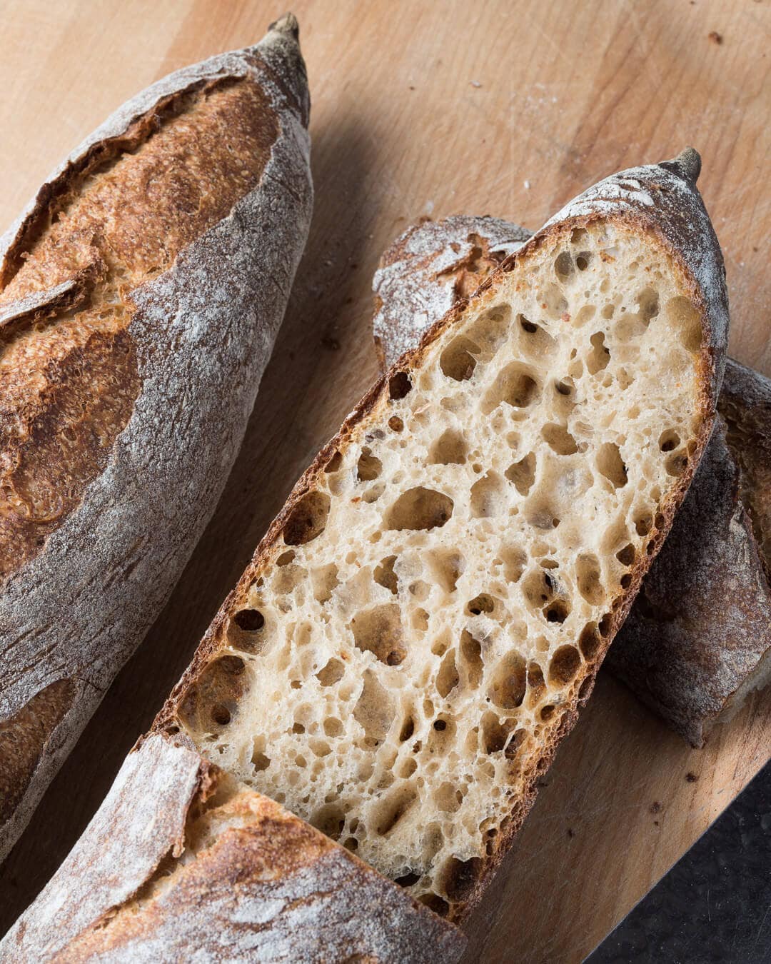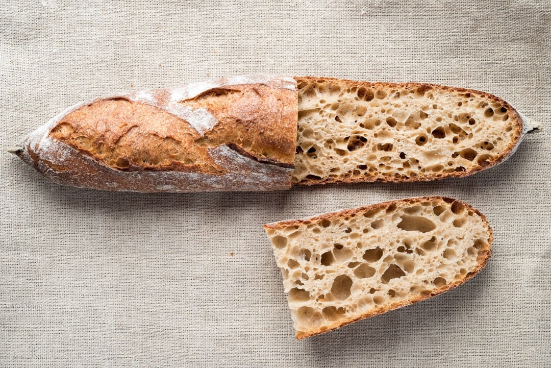 If you haven’t tried a classic sourdough baguette, that’s your next stop. They call for more white flour, but result in a super open interior, thin crus, and very delicate flavor profile.