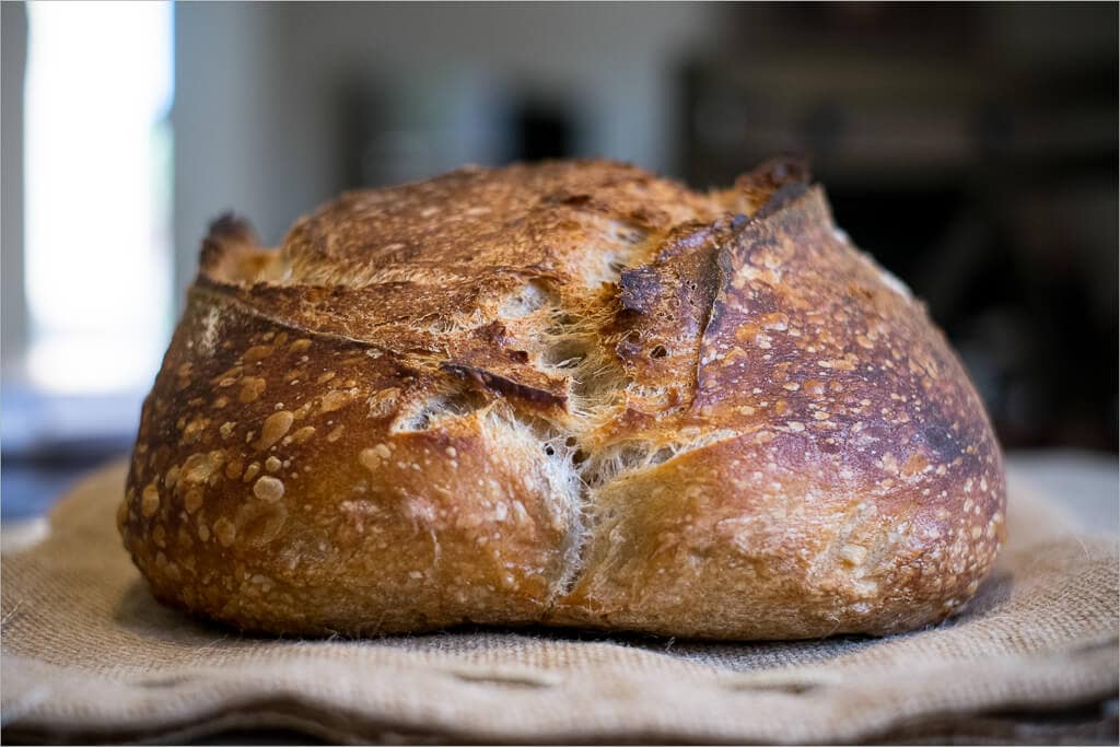 One important thing I noticed with these 3 times a day feedings: my starter no longer smelled like vinegar by the time its next feeding came around. I reduced the amount of acidity carried over at each feeding by frequently discarding 80% of my starter, removing that intense vinegar smell, and in the end, reduced the sourness of my bread enough that it only barely peeked through.