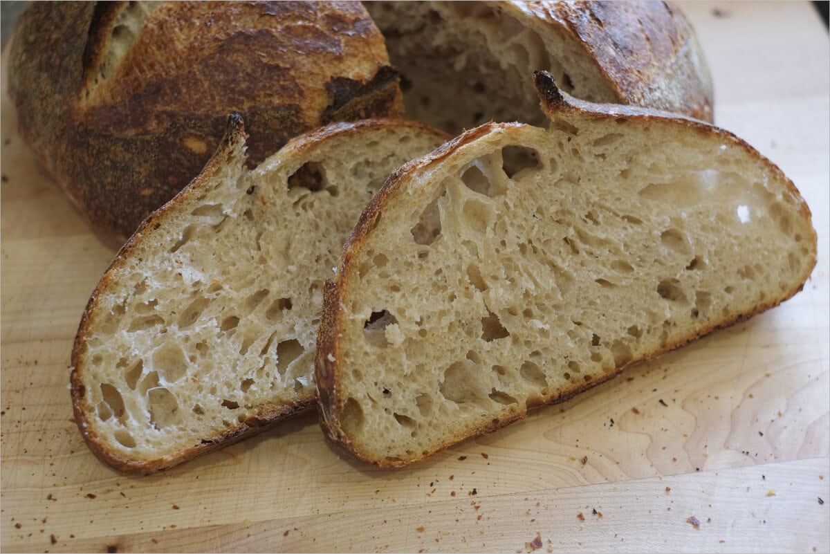 My wife keeps telling me: “every time you bake you keep saying ‘Wow this is the best bread I have ever made’ the saying is getting old now… Hmmm, this is delicious bread though, I think it is your best so far.” I’ve had some recent bakes that have just been a step or two above my usual. I find it hard to stop eating slice after slice with anything I can moderately justify placing on top (I even scraped up some onions and currants from a recent meal we had and used it in a sandwich—yikes that was good.). It’s dangerous when your bread just comes out great; you become a somewhat selfish person and hoard all the slices for yourself. And in this post, my sourdough bread with a young levain ranks pretty high up there.