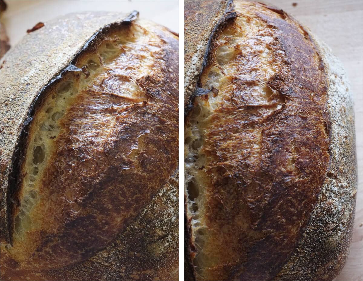 As my wife confirmed, this is the best set of white country sourdough loaves I’ve made. No doubt about it. I brought one loaf to our family Easter lunch, and it was gone in record time. Everyone commented on how soft and tender the crumb was, and how the sour flavor was so subtle, it only shows its head barely at the end. The young levain does impart a remarkable, complex taste without overpowering things.