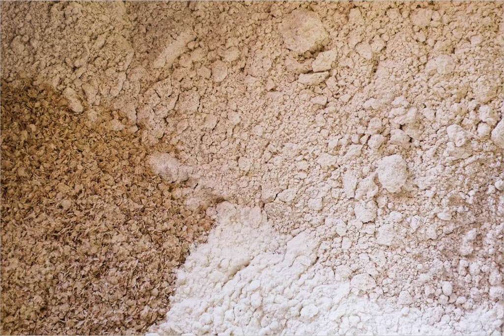 - Create your 500g high extraction flour by sifting your whole wheat flour. The flour that falls through the sifter is what you’ll use now, the bran that remains on the top can be reserved and used to coat your bannetons to prevent sticking but also increasing the whole grain percentage in this bread