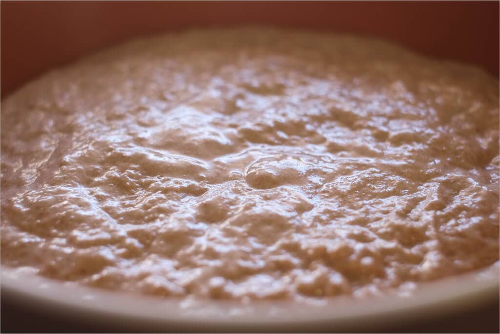 After mixing the above in a thick-walled glass container, cover and set in a slightly warm area, around 77°F (25°C), for about 6 hours.