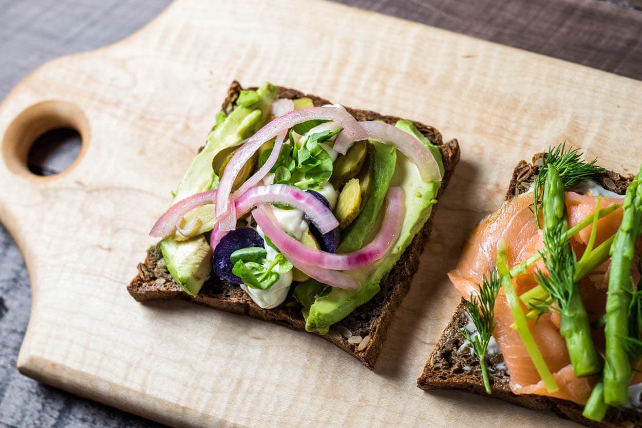 While these look like two puny pieces of meticulously decorated toast, don’t for a second think they are not filling. I ate two, I mean just two, and I was stuffed for hours. The hearty rye bread, healthy fats, and protein from the salmon will keep you satiated for longer than you might think.