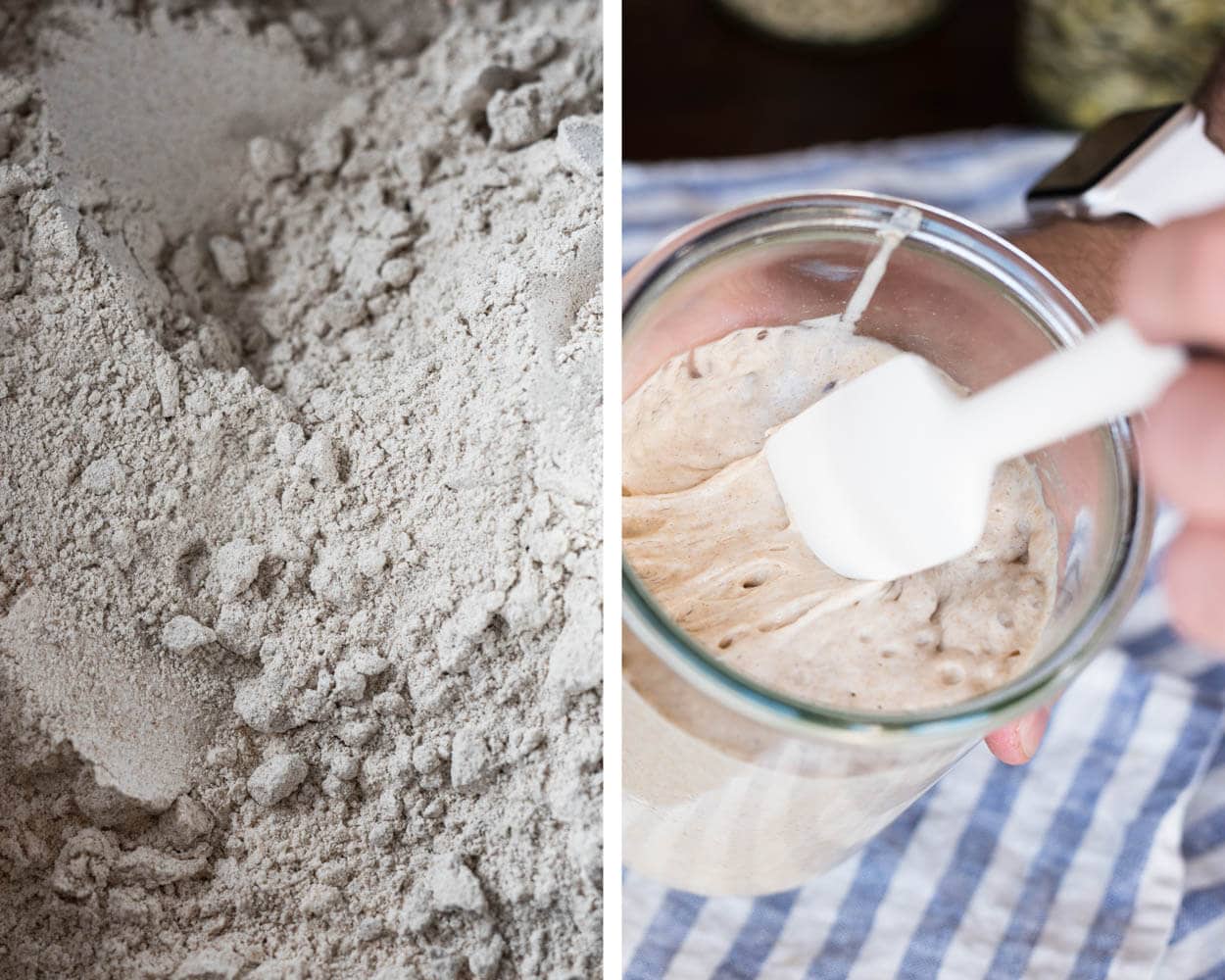 You could modify this recipe to change the percentages as you see fit, however, know that the more spelt or traditional wheat you add, the more rise your bread will have. A conventional rye bread should be a rather dense thing, with a hearty flavor, especially if you want them to stand up to some of the smørrebrød I outline below. I tacked on a few test bags of Central Milling Dark Rye and Medium Rye to my last bulk order, and I’ve found the flour to be great (big surprise). It’s milled super fine and has a fluffy, smooth texture to it. Any whole grain rye flour will work well in this recipe. I’ve been playing with freshly milled spelt for a while now and love the results when mixed with traditional wheat (I’ll have a future writeup on this) and it works equally well here in this bread while keeping the whole grain percentage rather high.