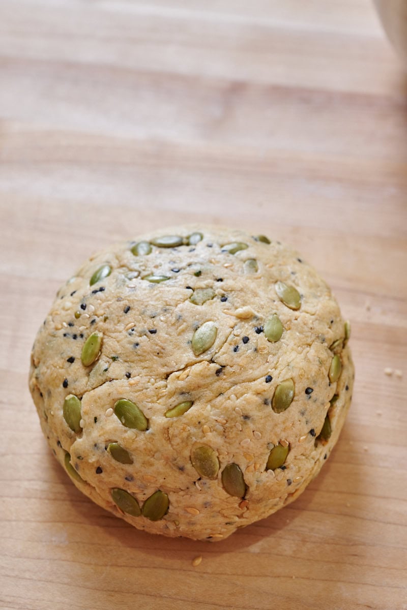 Adding raw seeds like sunflower, pumpkin, sesame, flax, and hemp adds a really stunning, almost terrazzo-like look to these crackers. I like a higher percentage of larger seeds and a lower concentration of small seeds, but about 125 grams of any seed, or even coarsely chopped nuts, would work very well.