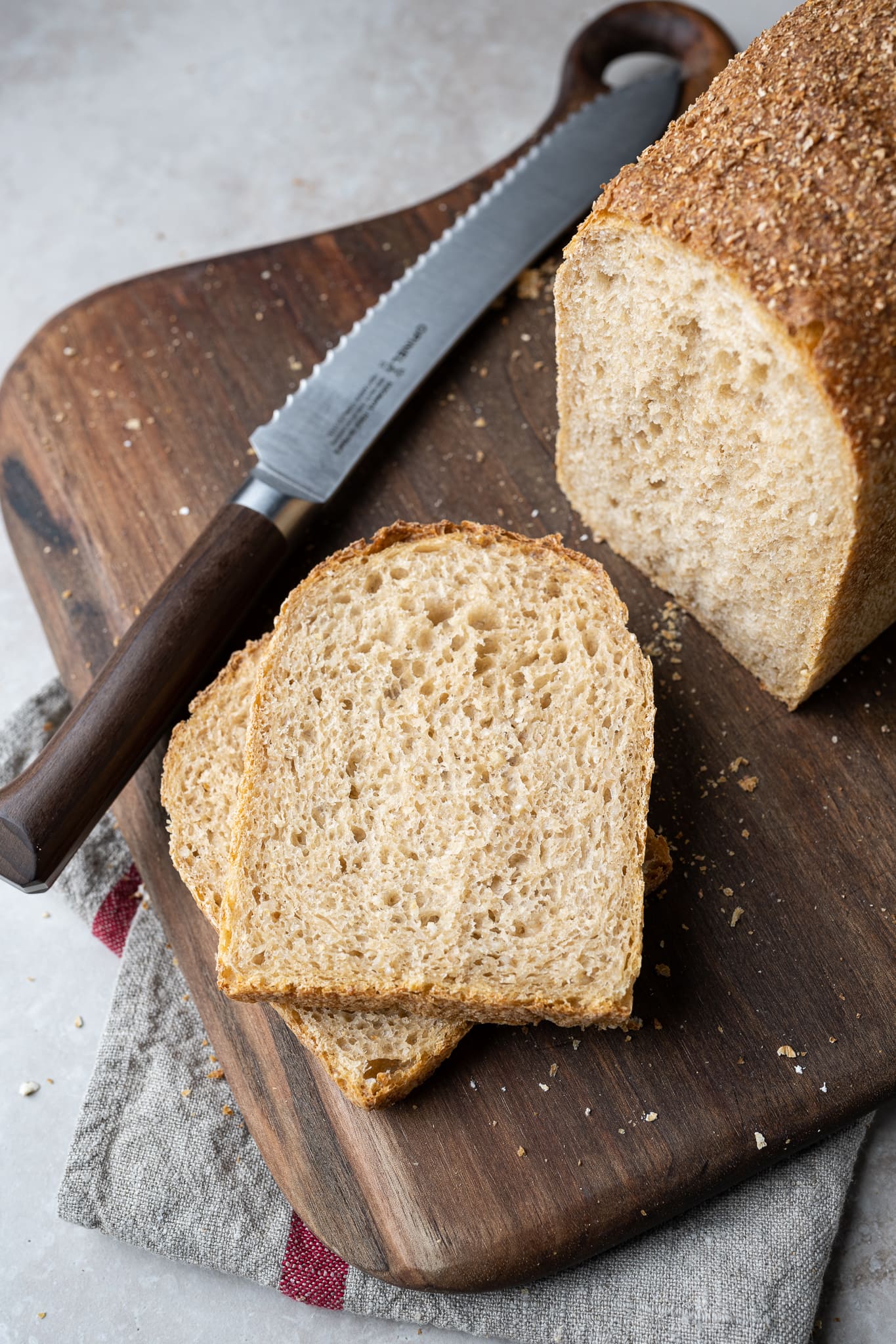 Once fully baked, be sure to cool your loaves on a cooling rack for 1-2 hours before slicing—which is very important with these pan loaves. Also, see my post on the best way to store bread to keep it fresh for a week or longer.