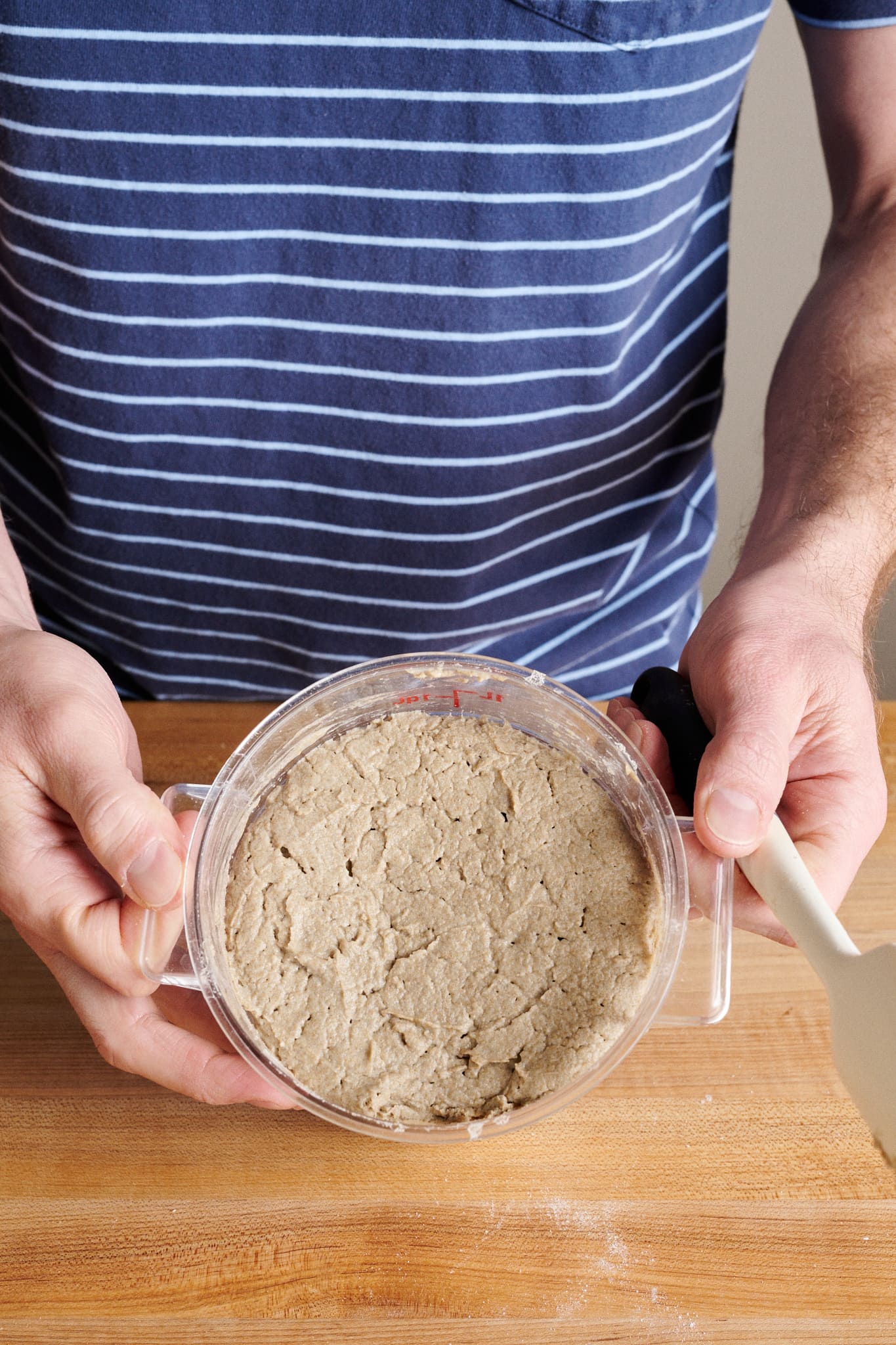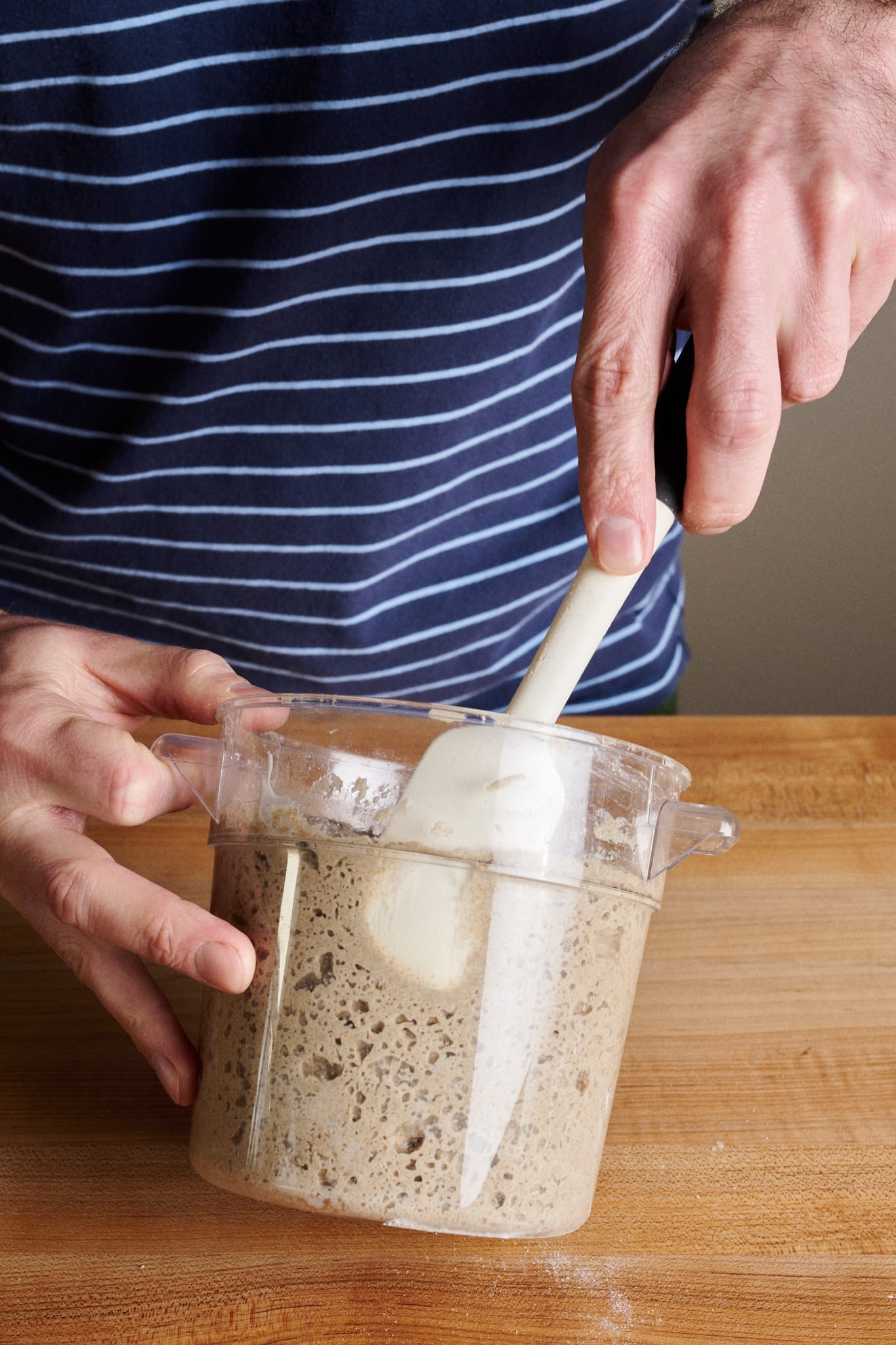 Note that this is a very large levain, so be sure your container can hold the ingredients plus a little room for expansion overnight. My favorite container for this size levain, seed soakers, and other large preferments, are 1-quart round Cambro Camwear containers.