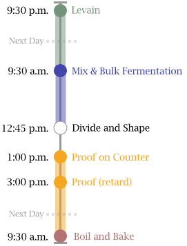 All-in-all, this is a straightforward schedule. It’s also quite flexible by a few hours here and there once the dough is chilled and in the fridge: if you can’t boil and bake first thing on day three, it’ll hold a few more hours (or perhaps longer).