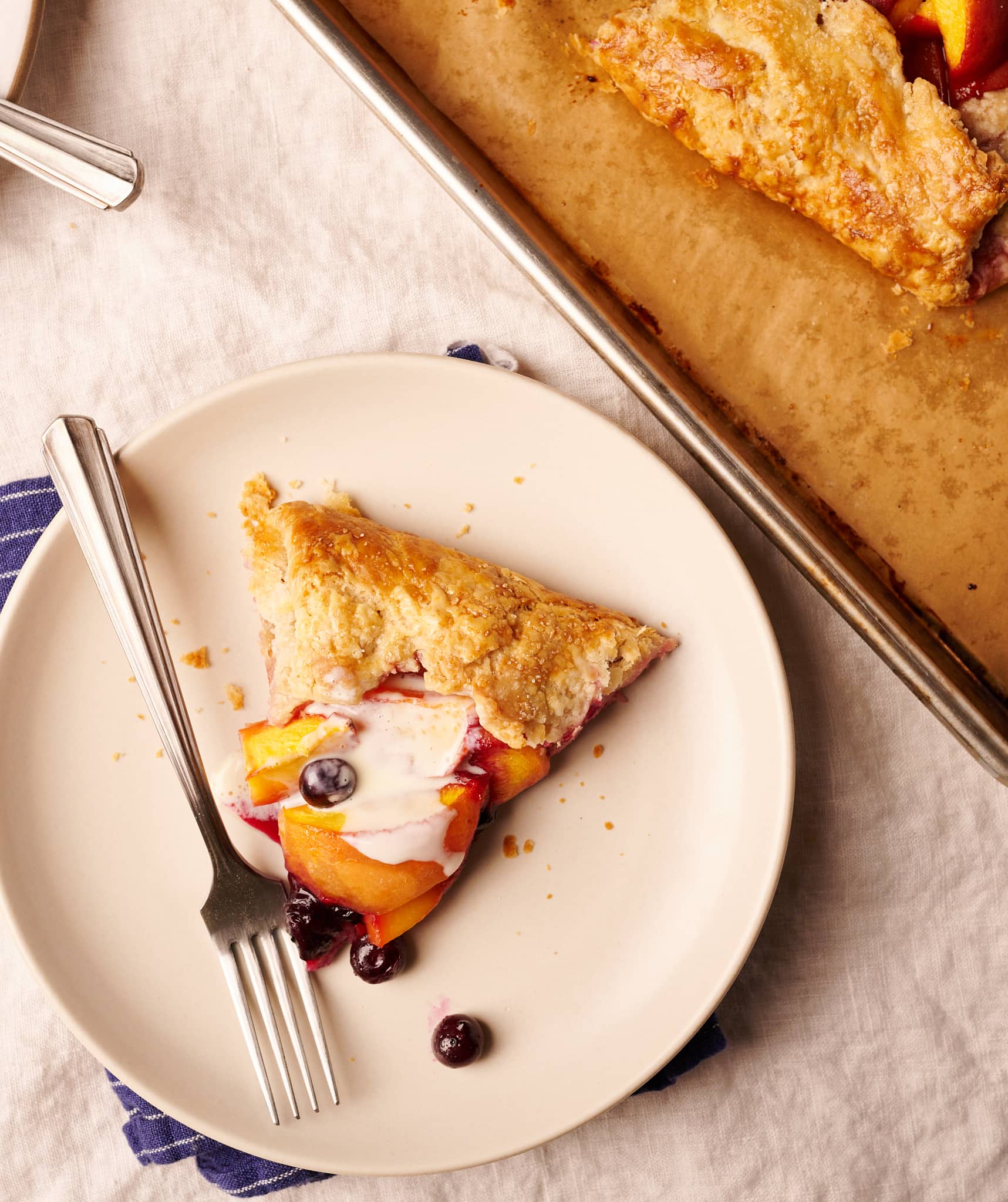 Now that you’ve learned how to make sourdough pie crust, use it to make one of my all-time favorite desserts: Whole-grain peach and blueberry sourdough galette.