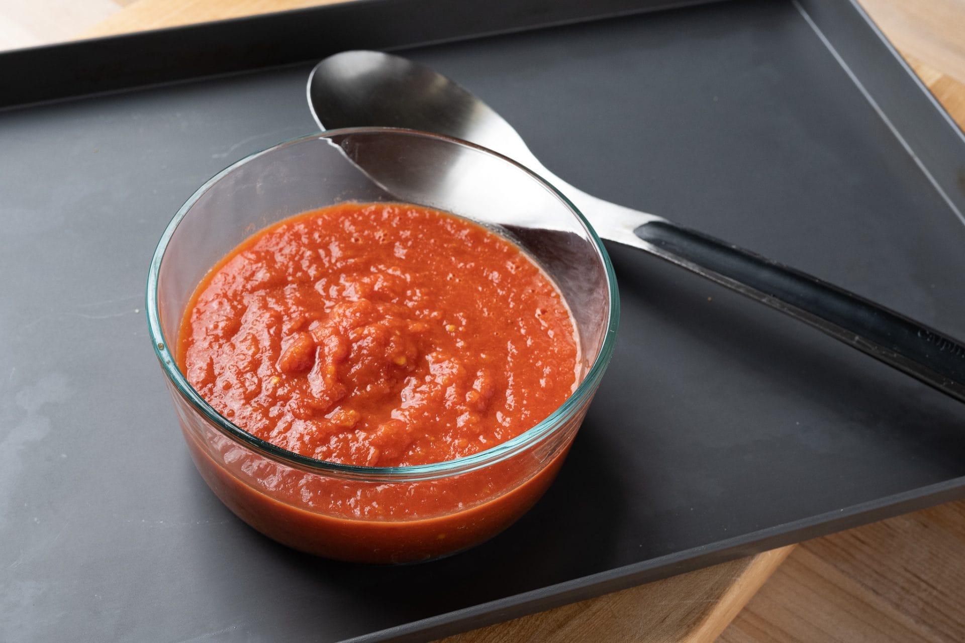 Leave the dough covered in the bulk fermentation container and proof on the counter for 2 additional hours (see note for overnight retard). About an hour into the proof, preheat your oven with a baking steel or baking stone inside to 500°F (260°C). - Prepare sauce and shape (4:30 p.m.)