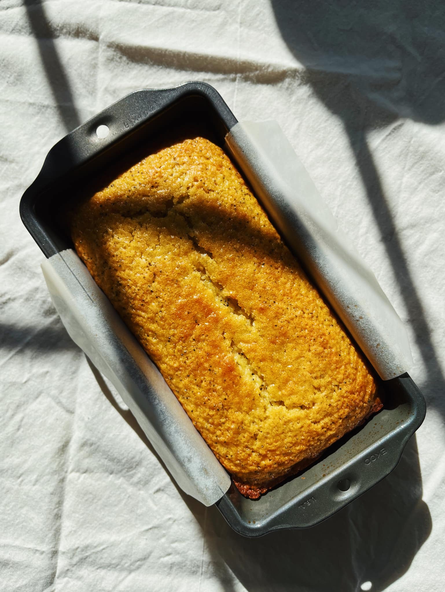 A classic tart lemon cake with a moist, tender interior and tangy twist thanks to the added sourdough starter.
