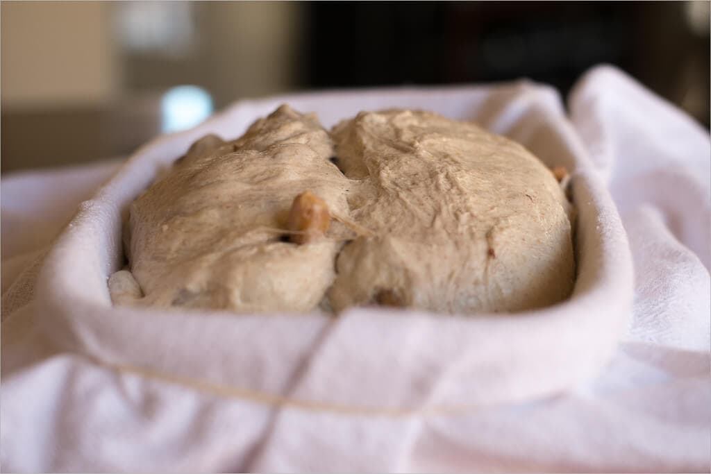 Place towels into small mixing bowls, or bannetons, and dust with white rice flour. These baskets will hold the dough as they proof in the fridge overnight. Take your dough and place them into the baskets, then place both of the baskets into the fridge for an overnight proof.