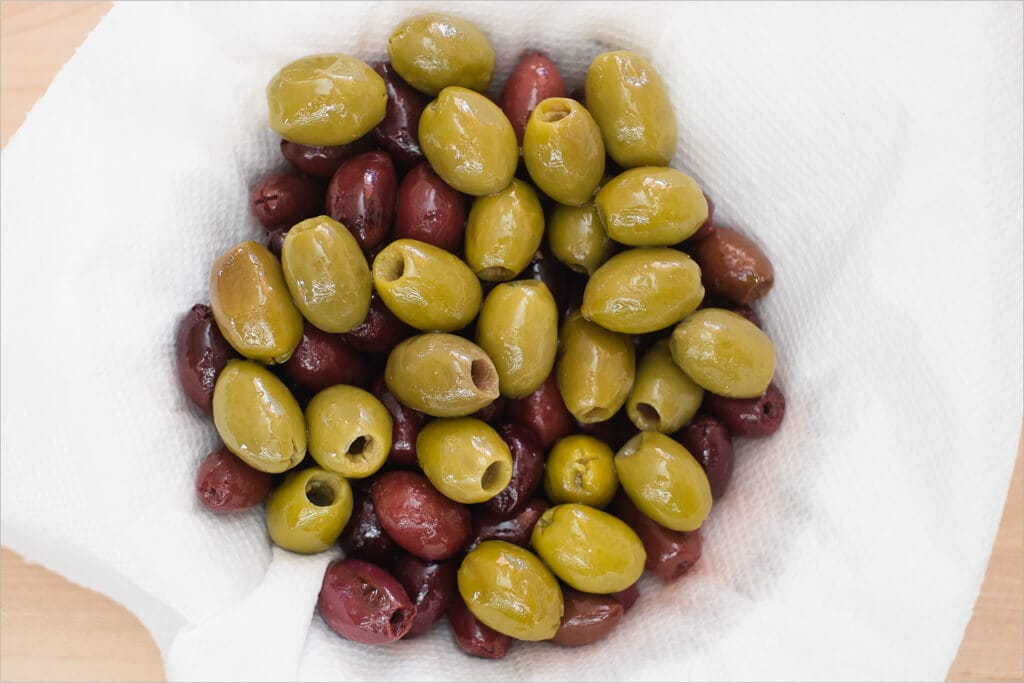 - 3 cups pitted olives (I did 2 cups kalamata and 1 cup green), loosely chopped