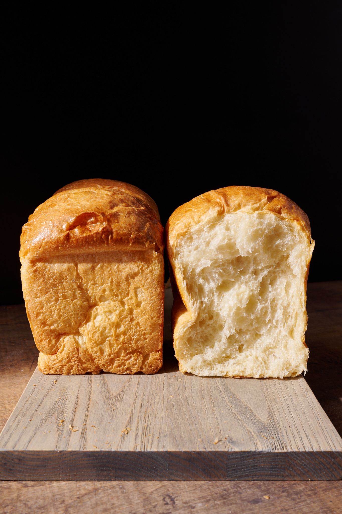 As fat coats those proteins, it can also delay yeast’s consumption of sugar, making for a slower rising dough; but this also makes for a more robust flavor. The exterior crust on such a dough will bake up relatively soft, and the crumb of the loaf will be plush. (You’ll often find sugar added to doughs that call for butter; not just for flavor, but also to further inhibit gluten development and tenderize the texture of a loaf. Sometimes, these doughs are even further tenderized with the addition of a pre-cooked flour and water or milk mix-in known as tangzhong, yudane, or water roux.)