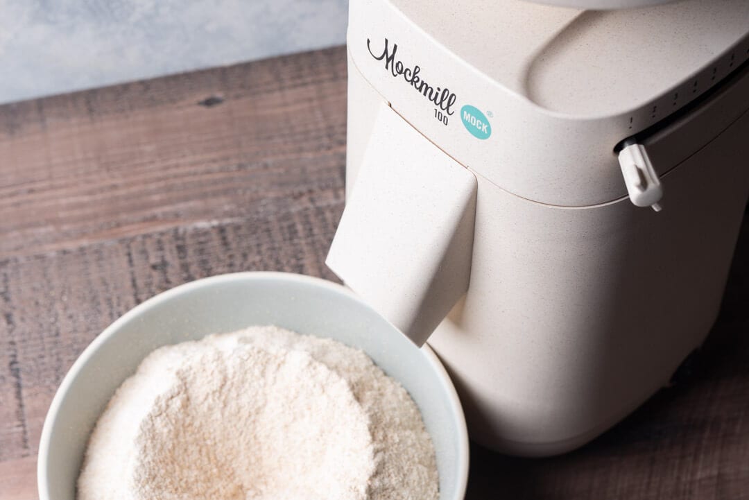 I used fresh milled organic whole white wheat (sourced from Breadtopia), as described below, but you could also use the excellent organic white wheat from King Arthur Flour. Their flour is also delicious when used in sourdough waffles and many other bread here at my site. I milled the white wheat and spelt in my Mockmill 100 home mill. I haven’t talked much about this mill yet, but I’ve been using it in my kitchen for a while, and I can safely say it’s a workhorse. It mills superbly fine flour, is built to last, and is priced exceptionally well. With mills like this, it’s easy for everyone to start milling fresh and healthy flour right from home.